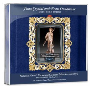 Featuring the National Guard Memorial’s prominent 6′ bronze Minuteman statue, which now stands ready in the memorial’s entry lobby. The National Guard Association of the United States commissioned renowned sculptor Evangelos Frudakis to design the statue in 1991 at the cost of $97,000. Now our prestigious monument is featured on our seventh edition commemorative ornament.