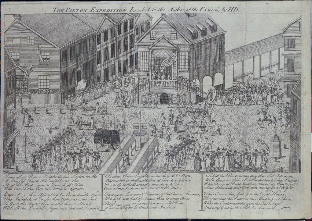 Over the next several years, the Associators expanded and professionalized. They established a grand battery on the Delaware River, trained artillerists, erected several fortifications, and inspired the recruiting and fielding of Associator companies in Bucks, Chester, and Lancaster Counties.[3] During the French and Indian War, the Associators had grown into multiple battalions, and several had volunteered as individuals to fight alongside crown forces in the western portion of the state. Back home, significant funding was put into reinforcing the city’s fortifications, arming the Associators with modern artillery and muskets, and protecting the city from both internal and external threats.[4] In 1764, during the crisis surrounding the uprising of the “Paxton Boys” in the western portion of the colony, the Associators were mustered into service. They provided a crucial deterrent for those who wished to undermine the government of Philadelphia.[5]